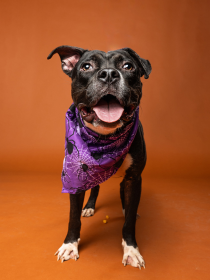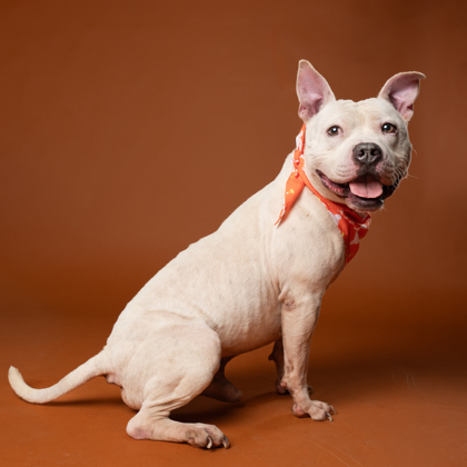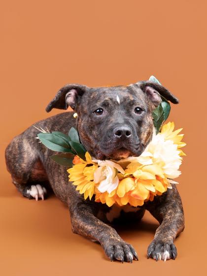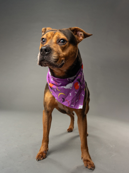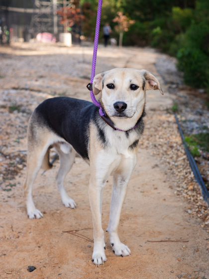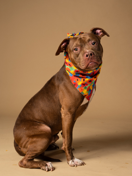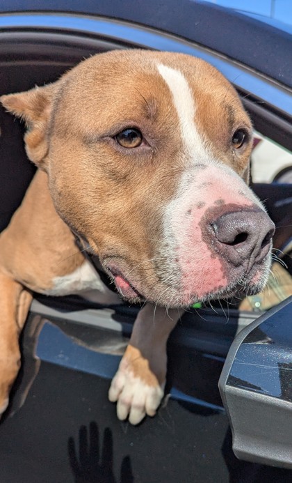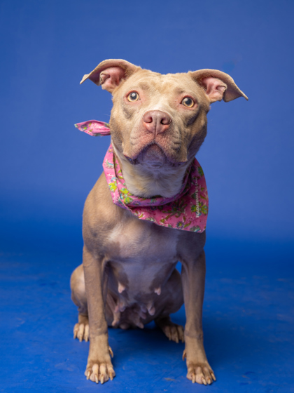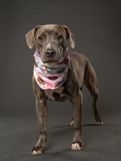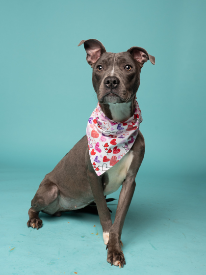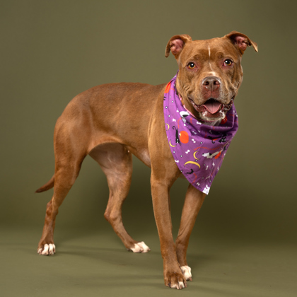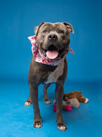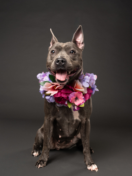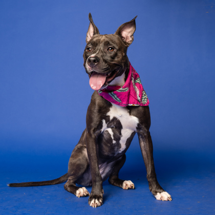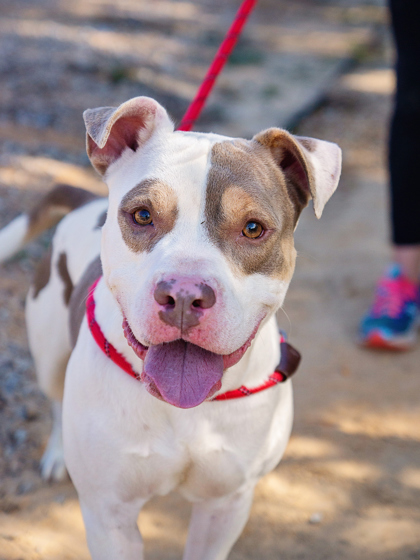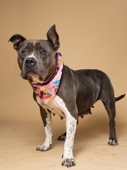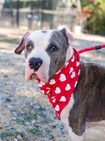 She’s people-oriented, treat-loving, and happiest outside, soaking up the sights and smells. With her friendly nature, she’s tolerant of other dogs and could thrive with the right furry friend.