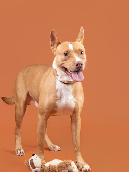 Snoop is a playful 45-lb boy with fantastic ears and a big love for toys—especially squeaky ones!