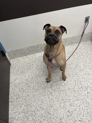 trained, knows his basic commands, is treat motivated and will sit like a champ for one! This sweet boy love toys, playtime, and showing off his adorable snorts, but he’s just as happy snuggling up for love. Brutus is a joyful, loving pup ready to be your best buddy!