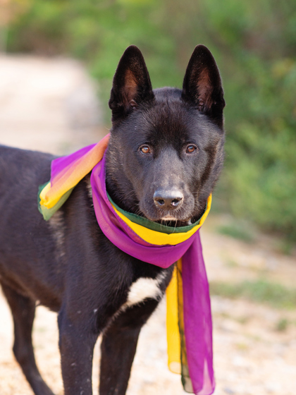 strolls. She’s gentle, loves to sniff, enjoys quiet companionship, and politely coexists with other dogs. Koko lights up with human affection and would thrive in a peaceful home that appreciates her independent, loving nature.