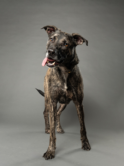 friendly, curious, and loves carrying toys on walks. She’s looking for an active home that can help her channel her energy. Dog-social and affectionate, she's a sweetheart and tons of potential.