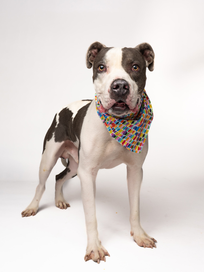 around the play yard with a squeaky toy, knows “sit,” takes treats gently, and learns quickly with calm guidance. This happy, treat-motivated good boy is ready to bring big smiles to your home!