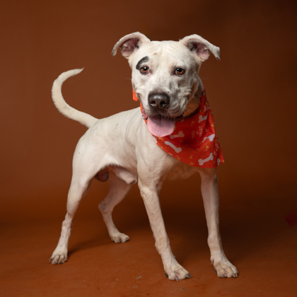 walking in crowded places and meeting all kind of people (including kids!) He's a playgroup helper who is good at greeting all the new dogs. He's playful and happy and bouncy - but at the end of the play time loves to lean on his person and get some affection. Skippy is only about 1.5 years old and may pass breed restrictions. He's an all around friendly guy looking for a chance!
